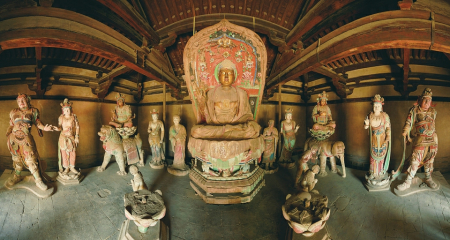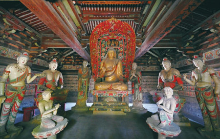 五臺佛光寺東大殿唐代彩塑刻畫入微,體態(tài)豐滿,展現(xiàn)了唐代彩塑的高超技藝。