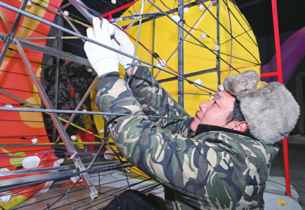 工作人員在巡查花燈電路,確保電力運(yùn)行穩(wěn)定。