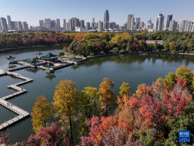 11月18日在湖北省武漢市東湖風(fēng)景區(qū)拍攝的初冬景色(無人機(jī)照片)。新華社發(fā)(趙軍攝)