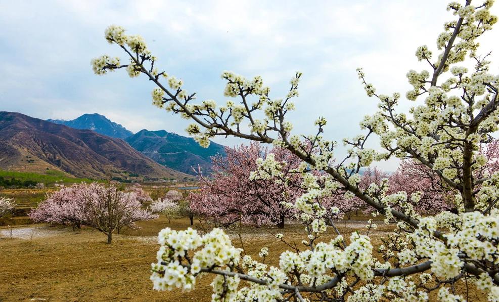 沿著長城一號旅游公路向西而行,一片片的杏樹接踵而來,滿樹的杏花你挨著我,我擠著你,嬌艷欲滴,微風(fēng)拂過,清香味撲鼻而來。盛開的杏花一大片一大片的,粉嘟嘟的,花苞里微微泛著點紅,像害羞的少女嬌嫩嫩的,李峪的杏花開了。