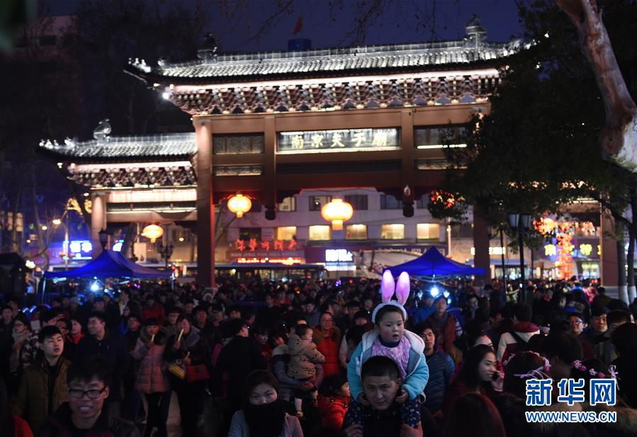 2月22日晚,游人在夫子廟景區(qū)觀燈游玩。當(dāng)晚,在江蘇南京夫子廟秦淮風(fēng)光帶舉辦的秦淮燈會彩燈齊放,人們前來觀燈鬧元宵。 新華社記者孫參攝