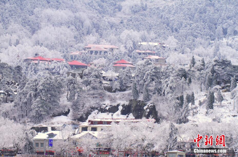 3月10日,受寒潮影響,江西廬山降下2016年入春首場大雪,和霧凇景觀同現(xiàn)。紅色的廬山老別墅房頂,在銀裝素裹的山中格外顯眼。一眼望去,分外妖嬈的廬山猶如仙境畫卷。圖為一眼望去,銀裝素裹分外妖嬈的廬山猶如仙境畫卷。 吳健 攝