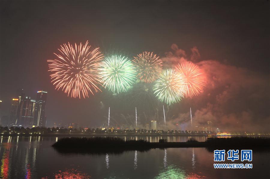 2017年1月1日夜晚,長沙橘子洲附近湘江上空綻放絢麗焰火。當晚,湖南長沙橘子洲舉行焰火晚會慶祝新年到來。整場焰火晚會主題為“多彩星城、魅力長沙”,焰火燃放時間約20分鐘。 新華社記者 龍弘濤攝