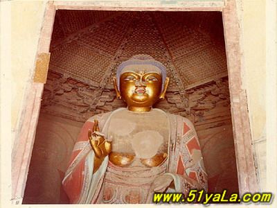 走進(jìn)第一層塔的南門(mén),迎面便是高約10米的釋迦塑像。頂部有精美華麗的藻井。內(nèi)槽的墻壁上,畫(huà)有六幅如來(lái)佛像,門(mén)洞兩側(cè)的墻壁上,也繪有金剛、天王、弟子等壁畫(huà)。壁畫(huà)中最引人注目的是內(nèi)槽門(mén)額壁板上的三個(gè)女供養(yǎng)人。畫(huà)面雖不大,但人物的體態(tài)勻稱,面容豐滿,神情安詳而虔誠(chéng),衣帶似被微風(fēng)吹動(dòng),在表態(tài)中給人以動(dòng)的感覺(jué)。畫(huà)面的色彩至今仍很鮮艷,可能是后人在遼畫(huà)的基礎(chǔ)上重新描飾的。