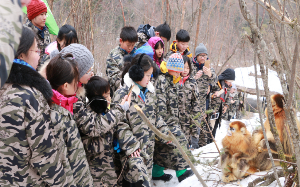 學生研學走進神農(nóng)架國家公園大龍?zhí)督鸾z猴基地(神農(nóng)架國家公園管理局供圖)?