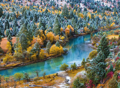 這是在林芝工布江達(dá)縣拍攝的雪后峽谷景觀(無人機(jī)照片,10月28日攝)。時(shí)值金秋,西藏林芝市秋色已濃,黃葉與初雪交織,流水并雪山輝映,景色如詩如畫。