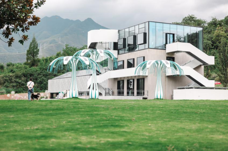 為積極貫徹“兩山+雙碳”理念,余村創(chuàng)建了中國(guó)首個(gè)全要素“零碳鄉(xiāng)村”。由化工廠改造的新潮建筑“余村印象”落地建成,它可以依靠可再生能源光伏發(fā)電系統(tǒng)進(jìn)行碳抵消,是名副其實(shí)的零碳建筑。
