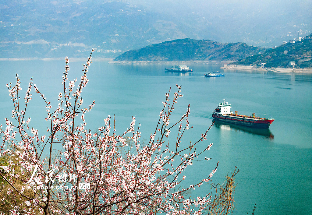 春風(fēng)送暖,大地回春,位于湖北省宜昌市的長(zhǎng)江三峽西陵峽兩岸櫻桃花、杏花相繼開放,生機(jī)盎然,船舶航行江面,宛如畫中,美不勝收。吳承忠攝(人民圖片網(wǎng))