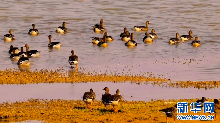 近日,眾多候鳥仍在菜子湖濕地流連。新華網(wǎng)發(fā)(陳春麗 攝)