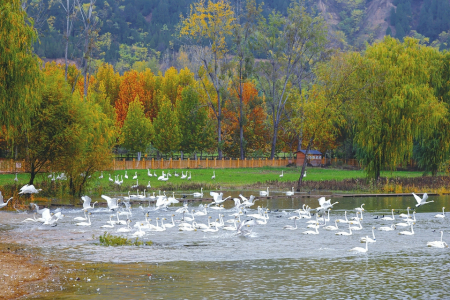 運(yùn)城的冬天,吸引了大天鵝、火烈鳥(niǎo)、反嘴鷸、蒼鷺、棕頭鷗、灰鶴、黑翅長(zhǎng)腳鷸等近200種野生鳥(niǎo)類(lèi)。當(dāng)成群的大天鵝從遙遠(yuǎn)的西伯利亞飛抵運(yùn)城,在運(yùn)城鹽湖景區(qū)、平陸大天鵝景區(qū)、芮城圣天湖景區(qū),均呈現(xiàn)出“萬(wàn)頃河水碧、一池雪花白”的壯觀景象,三大天鵝觀賞景區(qū)同步開(kāi)放。成千上萬(wàn)只白天鵝在黃河岸畔或自在游弋,或追逐戲水,或引吭高歌,為冬日的黃河流域運(yùn)城段增添了悠然靈動(dòng),讓人在此如臨仙境,流連忘返。為方便廣大游客參觀游覽,運(yùn)城免費(fèi)開(kāi)放冬觀天鵝專(zhuān)線(xiàn)城景通,期間周六開(kāi)設(shè)平陸專(zhuān)線(xiàn),途經(jīng)鹽湖景區(qū)、周倉(cāng)文化園、平陸大天鵝景區(qū)等,周日開(kāi)設(shè)芮城專(zhuān)線(xiàn),途經(jīng)鹽湖景區(qū)、圣天湖、永樂(lè)宮、廣仁王廟、城隍廟等,法定節(jié)假日兩條線(xiàn)同時(shí)運(yùn)行,可在運(yùn)城高鐵站、北郊億適家超市、運(yùn)城火車(chē)站等市區(qū)公交站點(diǎn)乘坐。