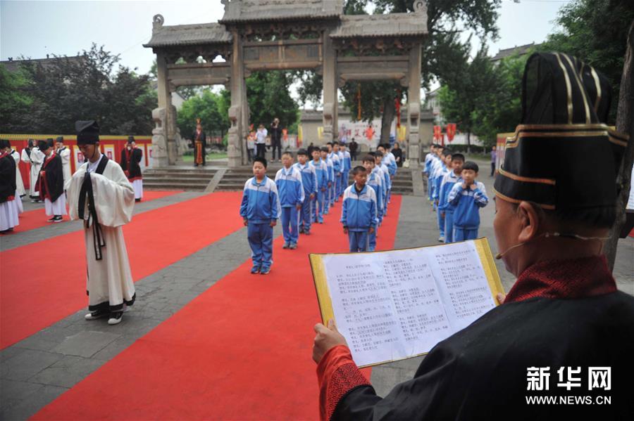 5月7日,山西運(yùn)城新絳縣在當(dāng)?shù)厍旯懦墙{州的文廟首次舉行釋菜禮大典,以弘揚(yáng)傳承尊師古文明,吸引了城鄉(xiāng)眾多群眾和中小學(xué)生冒雨觀典。新華社發(fā)(高新生 攝)