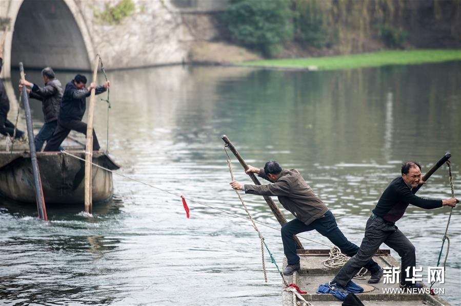 1月2日,浙江省紹興市柯橋區(qū)安昌鎮(zhèn)舉行水上拔河趣味表演。水上拔河是紹興水鄉(xiāng)的傳統(tǒng)活動,不僅是力量的較量,也是當(dāng)?shù)貍鹘y(tǒng)劃船技巧的展示。新華社發(fā)(張輝 攝)