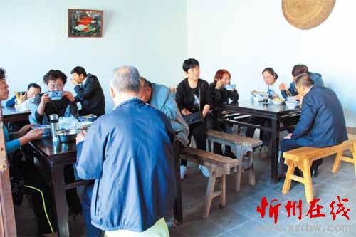 今年中秋節(jié)期間,筆者在這家小店招待了一位河北保定籍的馬姓文友??腿寺犝f中午要用高粱面招待他時,臉上隱隱露出不悅之色。當(dāng)熱騰騰的出籠紅面魚魚端上桌時,他也學(xué)著澆上臊子慢慢品嘗。只見他邊吃邊不住地點頭,臉上也多云轉(zhuǎn)晴了。當(dāng)一碗紅面魚魚下肚后,他雙手豎起大拇指,夸贊這頓別有風(fēng)味的粗糧美餐。友人說,在他們那里有一句歇后語:日本人吃高粱面——沒有法子。在他的印象中,“高粱黑豆乃驢馬之料”,人不到最困難的時候是不會吃的。想不到忻州人竟能把這種粗糧做得如此美味!