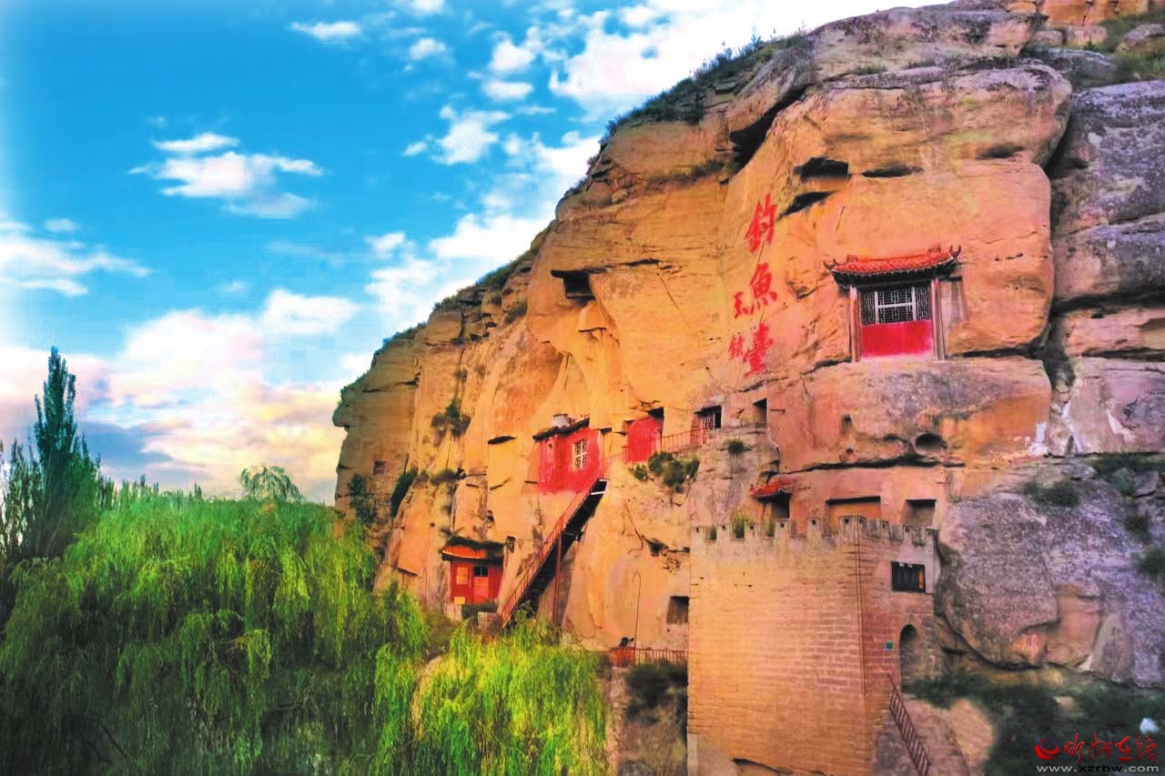 釣魚臺在石壁上鑿就,構(gòu)件懸空,門額上鐫刻著“天險雄辟”四字。石窟呈方形,共有六處,形狀大同小異,內(nèi)設(shè)佛祖閣、潮音閣、藏經(jīng)洞、古韻軒、呂祖祠等佛教活動區(qū)。從地形上看,釣魚臺恰好位于黃河由西向南將要拐彎的回旋之地,陳奇瑜之孫陳大德在《釣魚臺記》中曾對此地的優(yōu)美風(fēng)景進(jìn)行描述:“輕鰷出水,白鷗矯翼,釣艇往來碧波間……”遺憾的是,陳奇瑜還沒來得及居住,就遭時任山西巡撫的申朝紀(jì)陷害,以不遵剃發(fā)令、“留發(fā)不留頭”為由押解太原斬首,死后葬于保德縣黃河岸邊距釣魚臺不遠(yuǎn)處的林家溝村西。