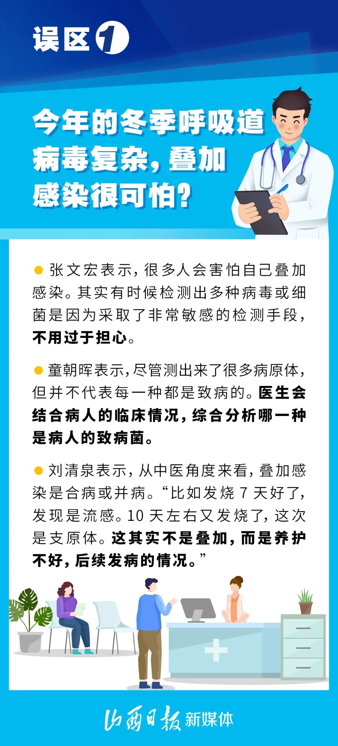 當(dāng)前,呼吸道疾病進(jìn)入高發(fā)季節(jié),多種呼吸道疾病交織疊加。近日,復(fù)旦大學(xué)附屬華山醫(yī)院教授張文宏、首都醫(yī)科大學(xué)附屬北京中醫(yī)醫(yī)院院長劉清泉,以及首都醫(yī)科大學(xué)附屬北京朝陽醫(yī)院副院長、北京市呼吸疾病研究所所長童朝暉三位專家,就當(dāng)前網(wǎng)絡(luò)上常見的關(guān)于呼吸道疾病誤區(qū)進(jìn)行詳解。