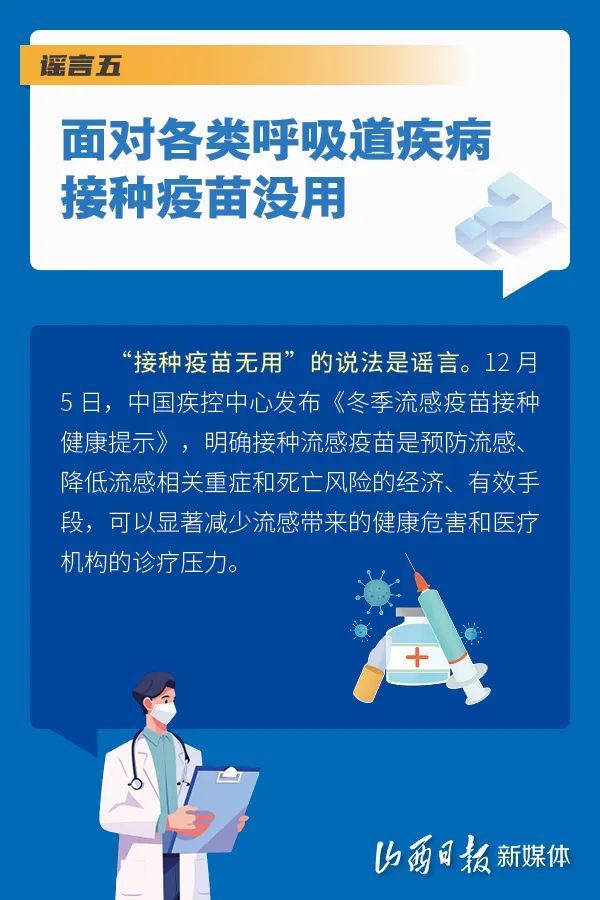 近期,呼吸道疾病呈現(xiàn)高發(fā)態(tài)勢。個(gè)別不實(shí)信息趁機(jī)傳播擴(kuò)散,誤導(dǎo)公眾認(rèn)知。特此澄清關(guān)于呼吸道疾病的5個(gè)謠言,幫助大家知曉呼吸道疾病的基本常識,做好健康監(jiān)測及預(yù)防措施。閱讀、收藏、轉(zhuǎn)發(fā)吧!