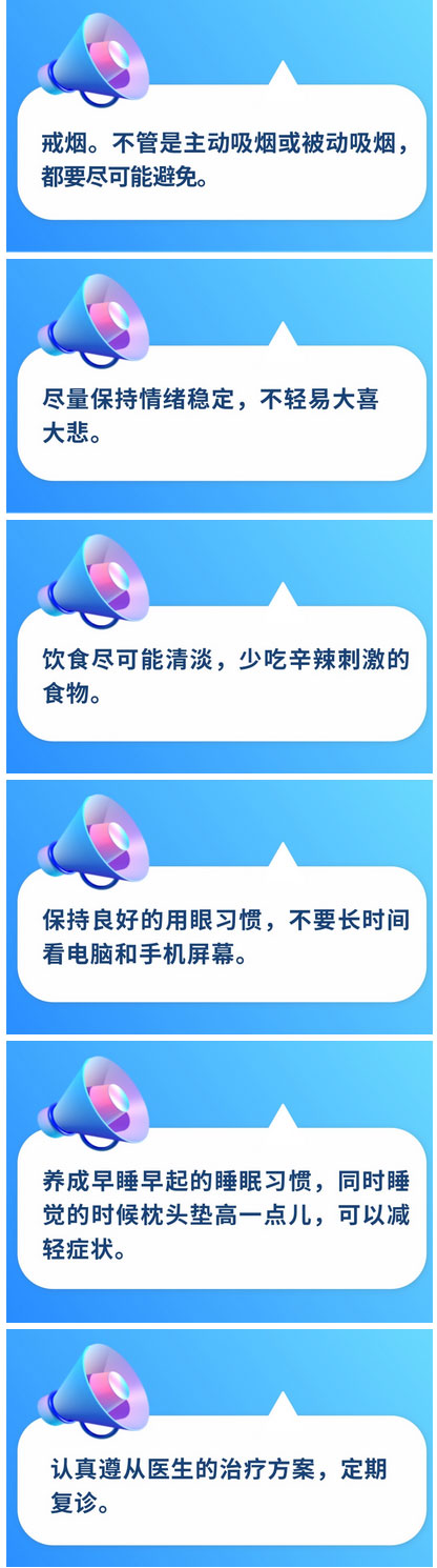 如果患者是剛開始發(fā)病,眼部癥狀還不明顯,經(jīng)醫(yī)生評估后,通常定期隨訪就可以了;如果突然出現(xiàn)病情進展,就需要立即復(fù)診。同時在這個過程中,保持甲狀腺功能穩(wěn)定,并按照上述提到的生活建議去養(yǎng)成習(xí)慣,可以在一定程度上延緩病情的發(fā)展。