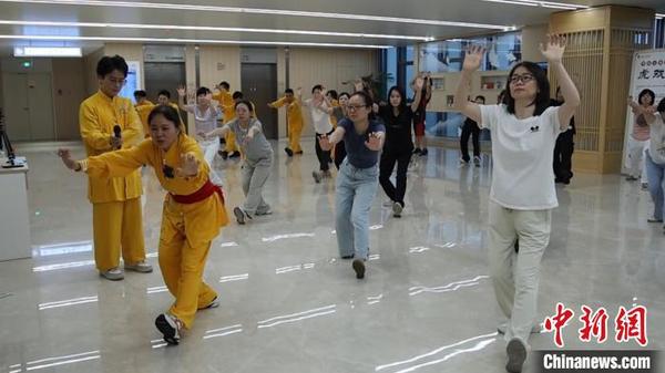 在現(xiàn)場,首期授課老師、浙江省立同德醫(yī)中醫(yī)內(nèi)科主任周天梅化身“私教”,一個個動作分步分解教學(xué),“‘虎戲’主要動作的要領(lǐng)是虎撲和虎舉,通過腰部的運(yùn)動,強(qiáng)壯腰腎功能,通過長期的運(yùn)動,可緩解長期工作導(dǎo)致的頸椎不適等癥狀,調(diào)節(jié)身心。”