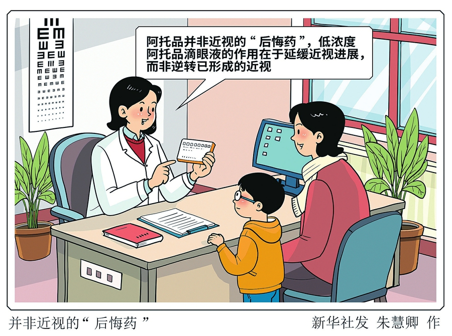 需要明確的是,阿托品并非近視的“后悔藥”?!斑€有一些家長(zhǎng)會(huì)誤以為用了阿托品視力就能恢復(fù)回來(lái),無(wú)需配鏡”。付晶說(shuō),低濃度阿托品滴眼液的作用在于延緩近視進(jìn)展,而非逆轉(zhuǎn)已形成的近視。兒童一旦確診近視,仍需佩戴度數(shù)合適的足矯眼鏡。
