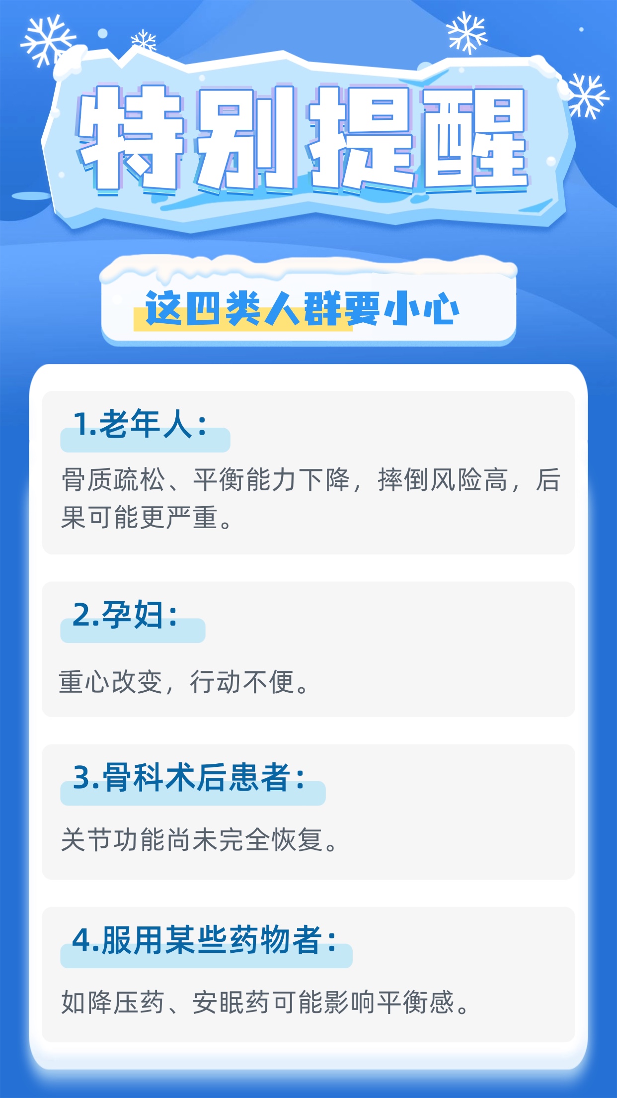 近日寒潮來襲,雨雪低溫導(dǎo)致路面濕滑,極易引發(fā)摔跤。每年冬雪季,因路滑摔倒導(dǎo)致骨折、扭傷的患者都會明顯增多。人民網(wǎng)《健康“醫(yī)”點通》欄目采訪了河南省職工醫(yī)院中醫(yī)科·中西醫(yī)結(jié)合科主任醫(yī)師張恒,總結(jié)了一份“雪天防摔秘籍”,助您安穩(wěn)過冬!