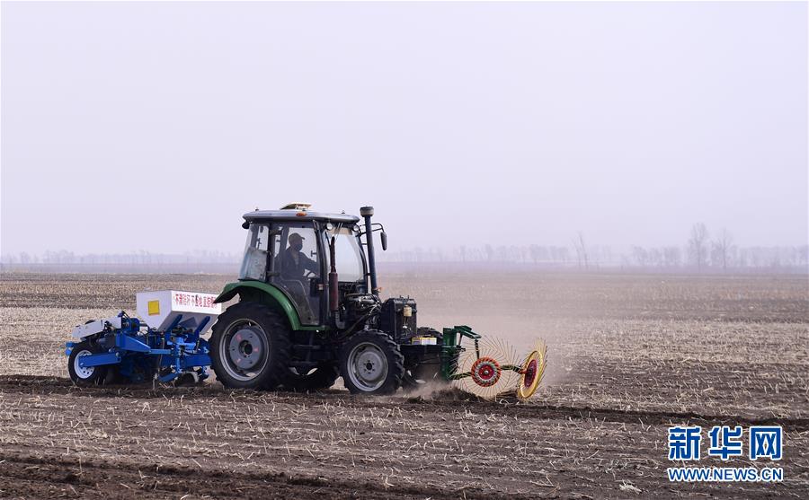 4月23日,吉林省榆樹市弓棚鎮(zhèn)農(nóng)民在播種玉米。 新華社記者 林宏 攝