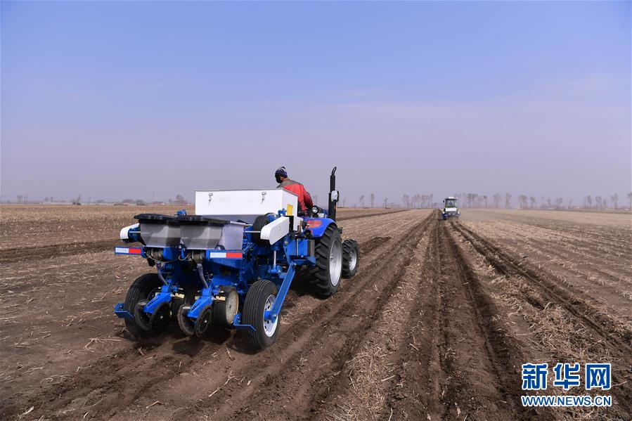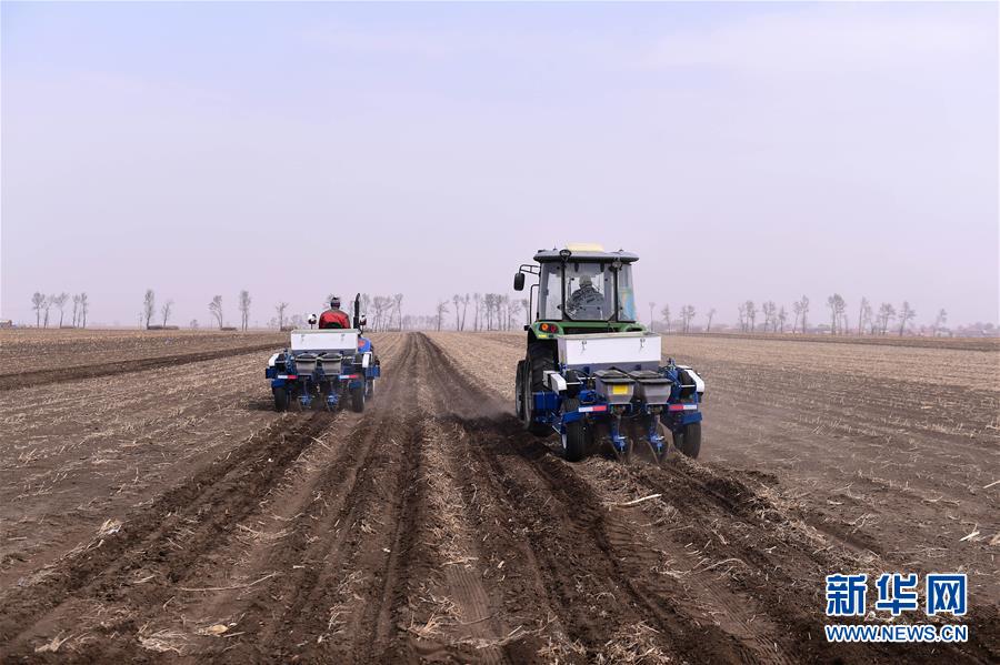 4月23日,吉林省榆樹市弓棚鎮(zhèn)農(nóng)民在播種玉米。新華社記者 林宏 攝