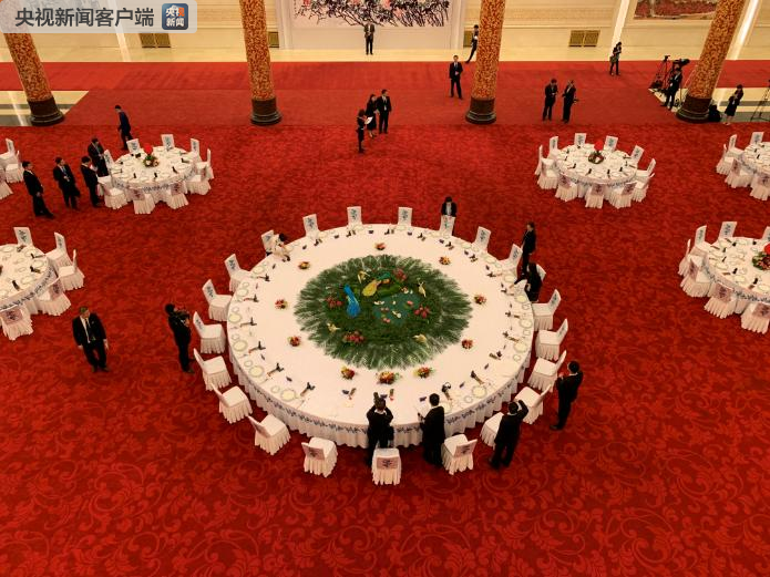 △習(xí)近平發(fā)表祝酒詞的講臺(tái)。(央視記者張宇拍攝)