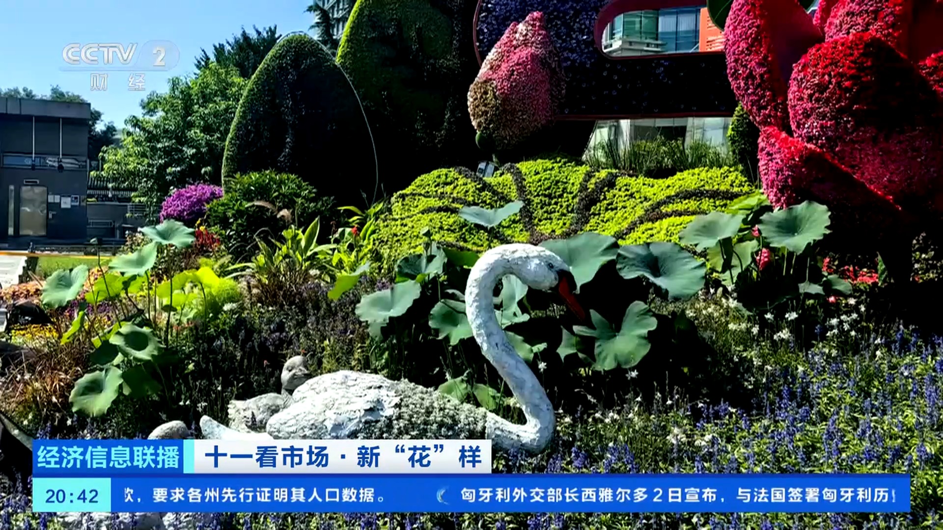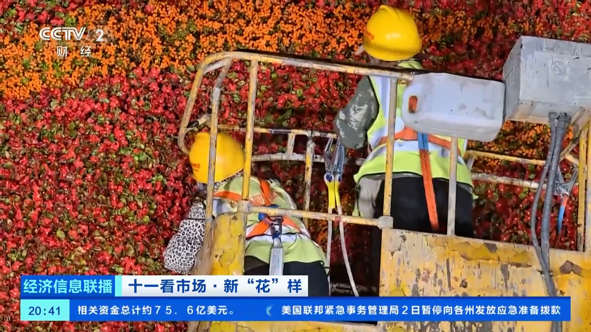 總臺央視記者 王聞聰:今年,在花壇的底部布置了一個直徑達45米的向日葵圖案,寓意朵朵葵花向太陽。這里面的花沒有那么大,但是,有兩種具有自主知識產(chǎn)權(quán)的花,分別是一串紅“奇跡”和小菊“絢秋星光”。他們是經(jīng)過了近10年時間,雜交選育得到的新優(yōu)品種,這兩種植物都是已經(jīng)能夠大面積應(yīng)用在園林綠化上的品種,在大花籃的花壇應(yīng)用總量近3萬株。