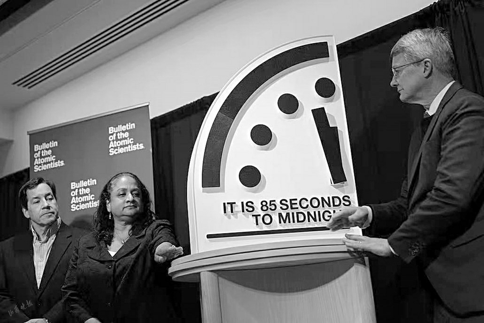 據(jù)新華社電 美國《原子科學(xué)家公報》27日說,受核武器威脅上升、人工智能等顛覆性技術(shù)帶來不確定性以及氣候變化等因素影響,人類文明面臨前所未有的危機(jī)。該雜志將“末日之鐘”指針向前撥4秒,距離象征世界末日的午夜85秒,為該機(jī)制設(shè)立以來最接近“末日”的水平。
