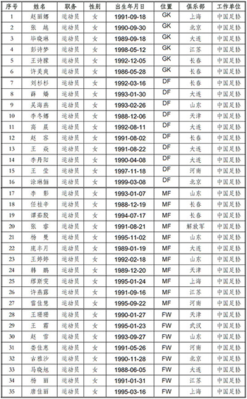 人民網(wǎng)北京5月18日電(楊磊)5月18日,中國(guó)足協(xié)在其官網(wǎng)公布了女足國(guó)家隊(duì)里約奧運(yùn)會(huì)參賽運(yùn)動(dòng)員35人大名單。馬曉旭、王霜等人在列,門將王飛沒有進(jìn)入此次大名單。