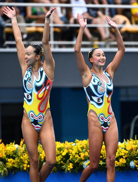新華社里約熱內(nèi)盧8月16日體育專電(記者王浩宇、李嘉)中國花樣游泳雙人組合黃雪辰/孫文雁在16日的自由自選決賽中發(fā)揮穩(wěn)定獲得銀牌,刷新了中國隊(duì)在該項(xiàng)目上的歷史最佳成績(jī)。實(shí)力強(qiáng)大的衛(wèi)冕冠軍伊什琴科/羅馬什娜組合為俄羅斯隊(duì)摘得金牌。