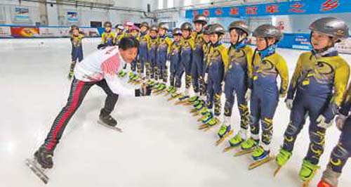 屈膝、揚(yáng)臂,如箭一般沖出起跑線;加速、過彎,再加速……敏捷的小運(yùn)動員們在冰面上留下優(yōu)雅曲線。冰場中央的董延海,手握秒表、眼觀賽道,正在為我國的短道速滑運(yùn)動挖掘更多好苗子。