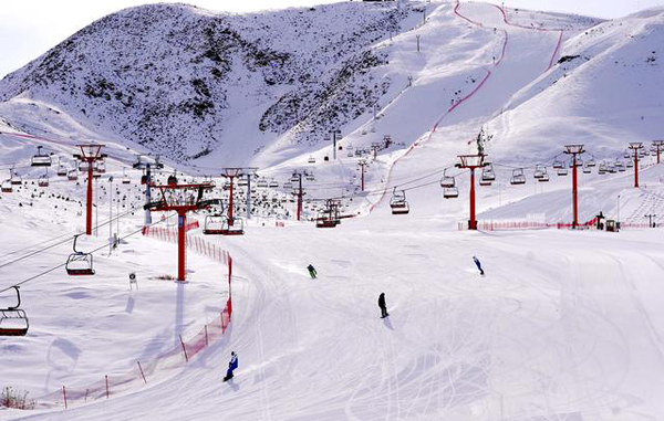 3月10日,游客在將軍山滑雪場(chǎng)滑雪。 新華社發(fā)(哈麗哈什·哈布德西攝)