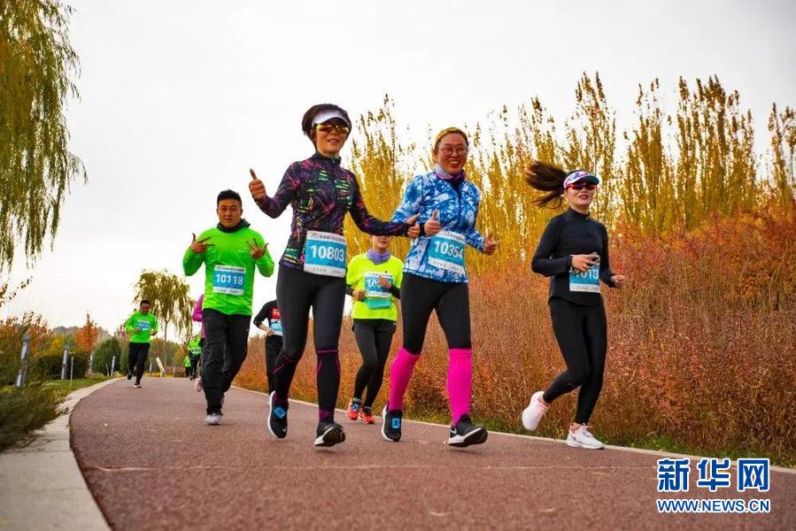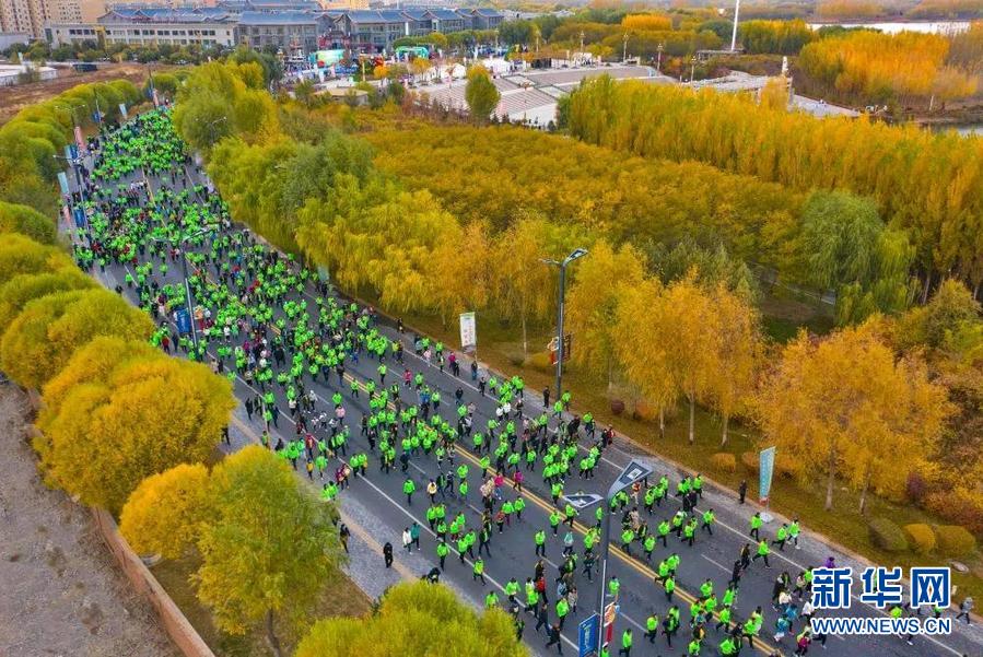 10月25日,參賽選手在2020張掖黑河生態(tài)馬拉松賽比賽中。新華社發(fā)(成林 攝)