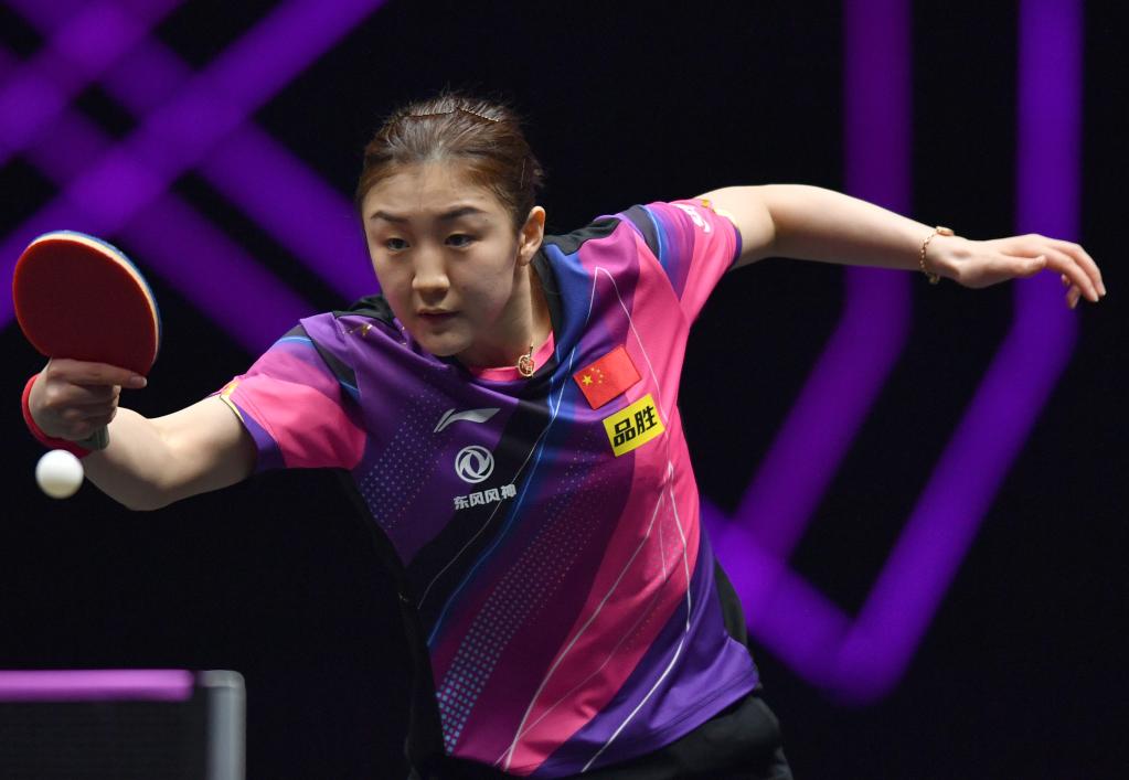 4月13日,陳夢(mèng)在比賽中回球。新華社記者李嘉南攝