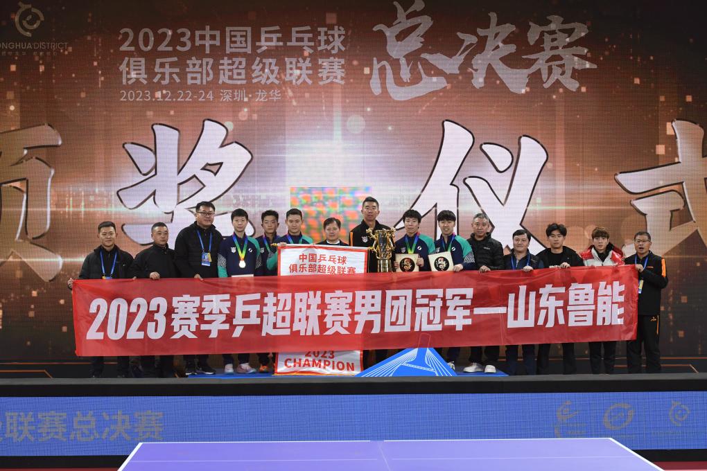 新華社深圳12月24日電(記者趙紫羽、王浩明、梁旭)2023賽季中國(guó)乒乓球俱樂(lè)部超級(jí)聯(lián)賽總決賽24日在深圳決出冠軍歸屬。馬龍坐鎮(zhèn)的山東魯能隊(duì)獲得男團(tuán)冠軍,陳夢(mèng)、孫穎莎領(lǐng)銜的深圳大學(xué)隊(duì)獲得女團(tuán)冠軍。