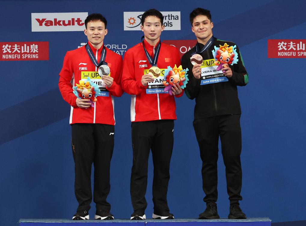 男單3米板較量中,傷愈復(fù)出的奧運冠軍謝思埸在預(yù)賽和半決賽處于領(lǐng)跑態(tài)勢,衛(wèi)冕冠軍王宗源在決賽發(fā)揮更加出色,6跳中有5跳拿到最高分,最終以538.70分摘金,實現(xiàn)世錦賽該項目“三連冠”。這也是王宗源職業(yè)生涯第8枚世錦賽金牌。謝思埸以516.10分摘得銀牌,墨西哥選手奧爾韋拉-伊瓦拉獲得銅牌。