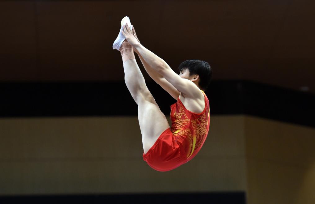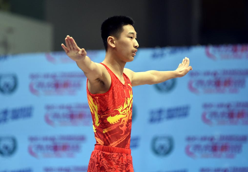 5月12日,中國運動員喻煒杰在比賽中。新華社記者 盧炳輝 攝