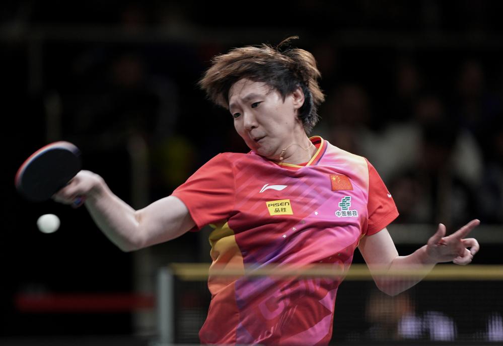 12月8日,中國隊選手王曼昱在女單比賽中回球。新華社記者 江宏景 攝
