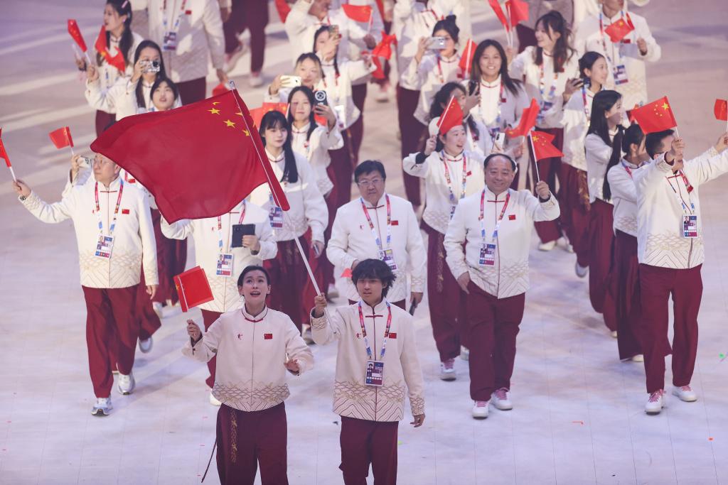 賽會(huì)開幕式于當(dāng)晚在都靈奧林匹克體育館舉行。入場儀式上,來自北京體育大學(xué)的女子冰壺運(yùn)動(dòng)員裴君杭和北方工業(yè)大學(xué)的男子高山滑雪運(yùn)動(dòng)員劉祥琪共同擔(dān)任中國代表團(tuán)旗手。
