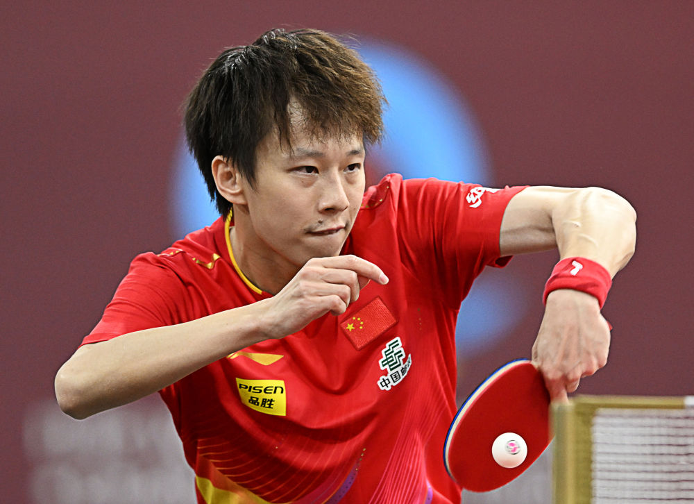 5月18日,林高遠(yuǎn)在比賽中回球。新華社記者 賀長(zhǎng)山 攝