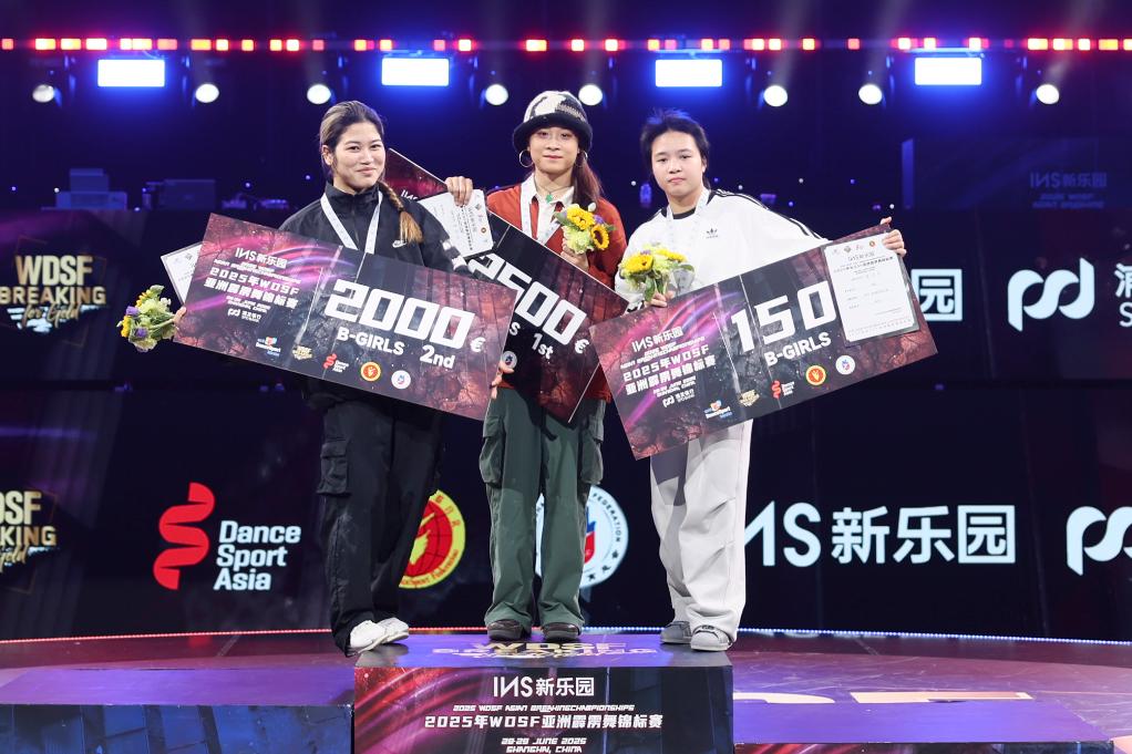 新華社上海6月29日電(記者許東遠(yuǎn)、肖亞卓)2025年亞洲霹靂舞錦標(biāo)賽29日在上海盧灣體育館結(jié)束。中國選手郭樸在女子組表現(xiàn)出色,繼前一日奪得亞洲青年錦標(biāo)賽冠軍后,再度在成年組比賽中折桂,實(shí)現(xiàn)連冠。男子組方面,日本名將、杭州亞運(yùn)會冠軍半井重幸則憑借穩(wěn)定發(fā)揮摘得金牌。