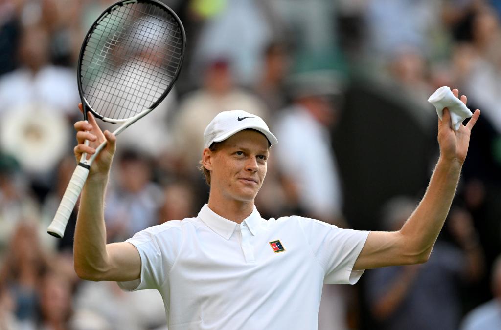 7月3日,辛納在比賽后慶祝勝利。新華社記者 李穎 攝