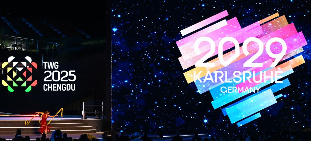 成都世運會組委會主席施小琳、國際世界運動會協(xié)會主席何塞·佩魯雷納先后致辭,向為本屆世運會圓滿成功作出貢獻的所有人員表示感謝。下屆世運會舉辦城市德國卡爾斯魯厄市市長弗蘭克·門特魯普致辭,熱情邀請全球賓客四年后相聚卡爾斯魯厄。