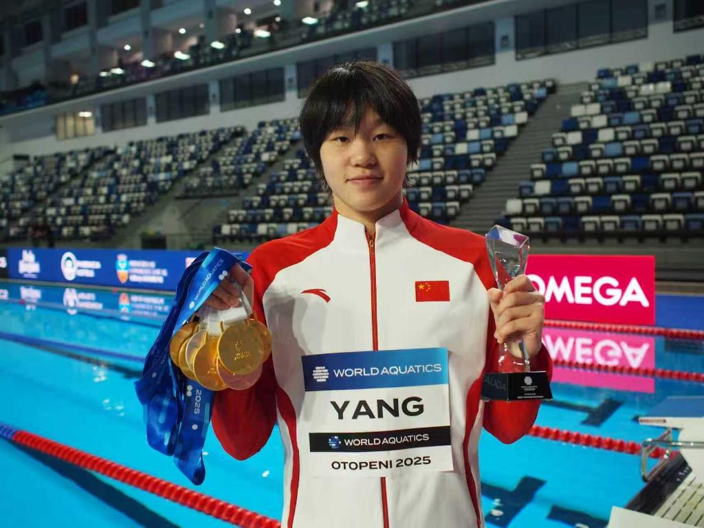 新華社布加勒斯特8月25日電(記者周欣、張改萍)在羅馬尼亞奧托佩尼舉行的世界青年游泳錦標(biāo)賽24日晚落幕,中國(guó)游泳隊(duì)的金牌和獎(jiǎng)牌數(shù)均創(chuàng)造世青賽歷史新高。18歲的楊佩琪成為最亮的“那顆星”,獨(dú)攬5金1銀1銅,個(gè)人刷新兩項(xiàng)賽會(huì)紀(jì)錄,榮膺賽事最佳女運(yùn)動(dòng)員(MVP)。
