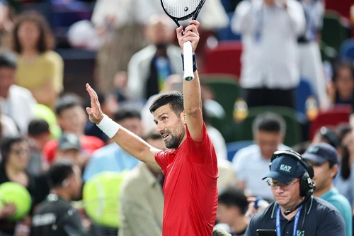 10月9日,焦科維奇在賽后向觀眾致意。新華社記者 丁汀 攝