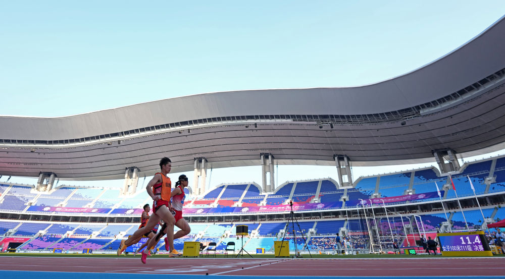 當(dāng)日,伴隨著提振人心的醒獅表演,田徑、聾人籃球等項(xiàng)目都在簡短的開賽儀式后進(jìn)入競賽環(huán)節(jié)。在廣東省奧體中心體育場舉行的田徑比賽傳來捷報(bào),巴黎殘奧會兩銀得主、山東選手郭芊芊在女子400米T35級比賽中,以超世界紀(jì)錄、破全國紀(jì)錄的1分14秒65率先沖線。兩屆殘奧會冠軍、陜西隊(duì)的董飛霞在女子鉛球F55級比賽中摘下桂冠。在她的鼓勵(lì)下,陜西隊(duì)當(dāng)天一共獲得6枚田徑金牌。