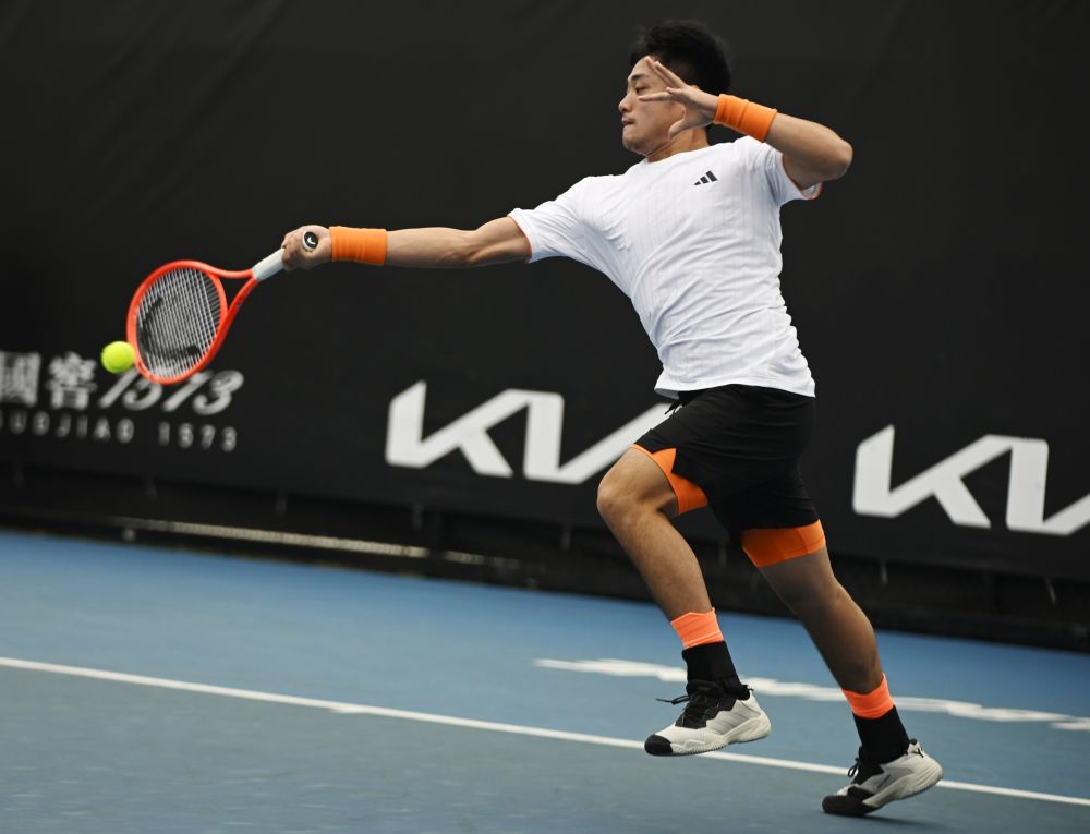 1月13日,吳易昺在比賽中回球。當(dāng)日,在澳大利亞墨爾本進(jìn)行的2026年澳大利亞網(wǎng)球公開(kāi)賽男子單打資格賽首輪比賽中,中國(guó)選手吳易昺2:0戰(zhàn)勝美國(guó)選手克魯格,晉級(jí)資格賽第二輪。新華社發(fā)(王申攝)