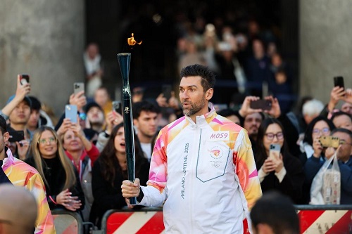 2025年12月6日,在意大利羅馬萬神殿,火炬手、意大利籃球運(yùn)動(dòng)員安德烈亞·巴爾尼亞尼在傳遞火炬。當(dāng)日,2026年米蘭-科爾蒂納冬奧會火炬在意大利羅馬傳遞。新華社記者李京攝