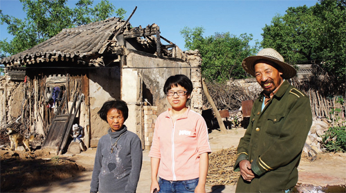 晏村是個(gè)有300多戶(hù)、3000多口人的村子,地勢(shì)高低不平,生活條件好些的村民搬遷到了城里或是村頭較為平整的地方居住了,留在村里的大部分是老人和小孩子。沿著彎彎曲曲、高低起伏的水泥路左拐右轉(zhuǎn),是宿香玲一家暫時(shí)寄居的地方——她故去叔叔的家。院子里也是幾間破舊的房子,屋內(nèi)墻壁、灶臺(tái)、土炕都是黑乎乎的,沒(méi)有一件像樣的家具,順著墻根有七八個(gè)大塑料袋,里面分別放著衣服和一些食用物品,宿香玲說(shuō),這些都是好心人和志愿者捐助的,這就是宿香玲家的全部家當(dāng)。